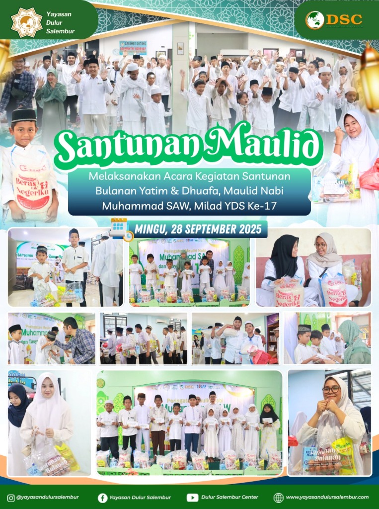 Alhamdulillah, atas izin Allah SWT, kegiatan Santunan Bulanan sekaligus Peringatan Maulid Nabi Muhammad SAW 1447 H yang diselenggarakan oleh Dulur Salembur telah berlangsung dengan lancar, penuh haru, dan penuh keberkahan.
